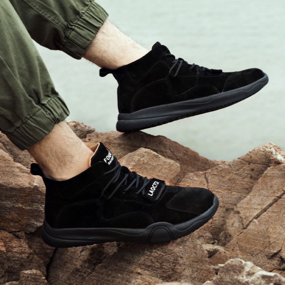 Men's Cotton Shoes Cowhide High-Top Snow Boots Plus Fleece Warm Boots